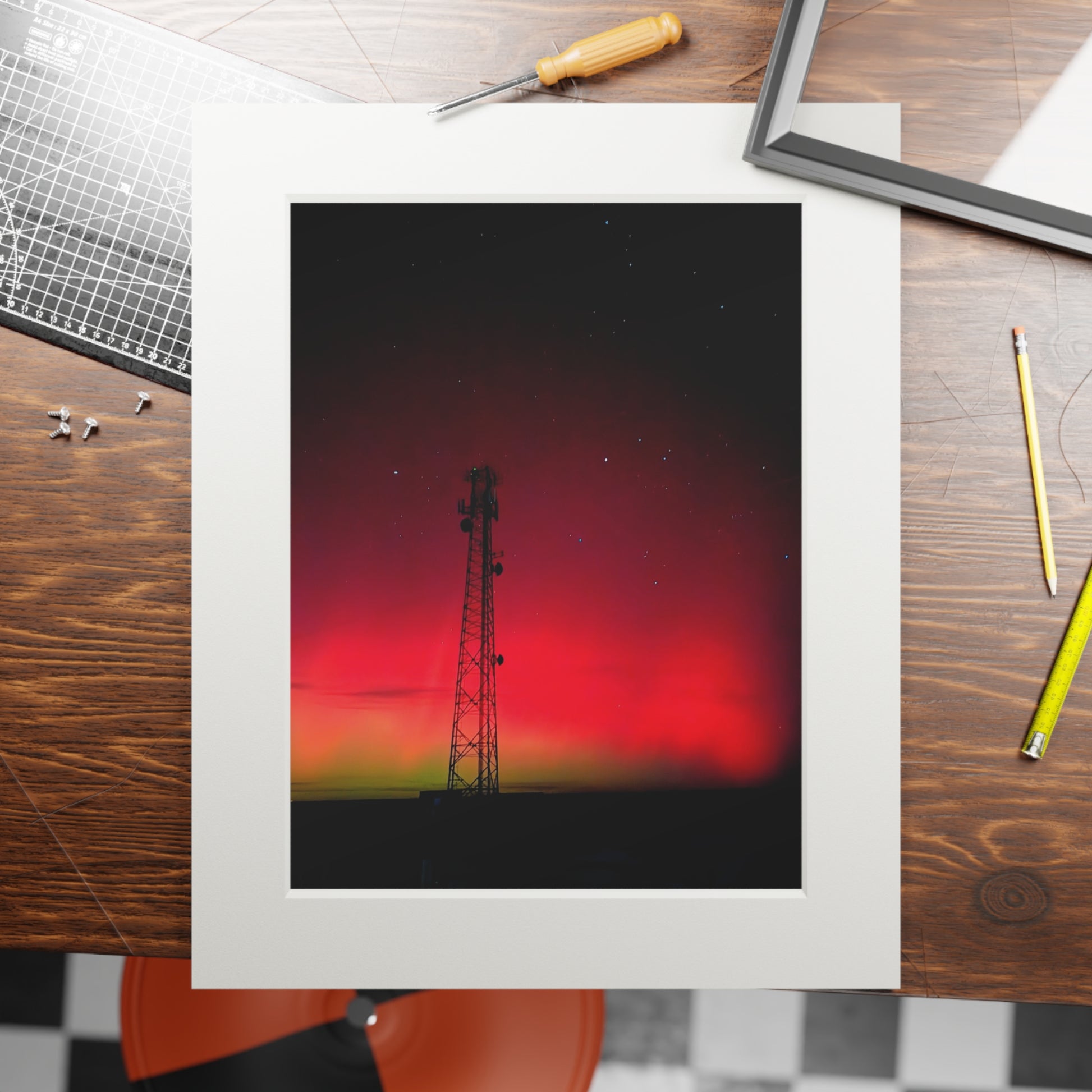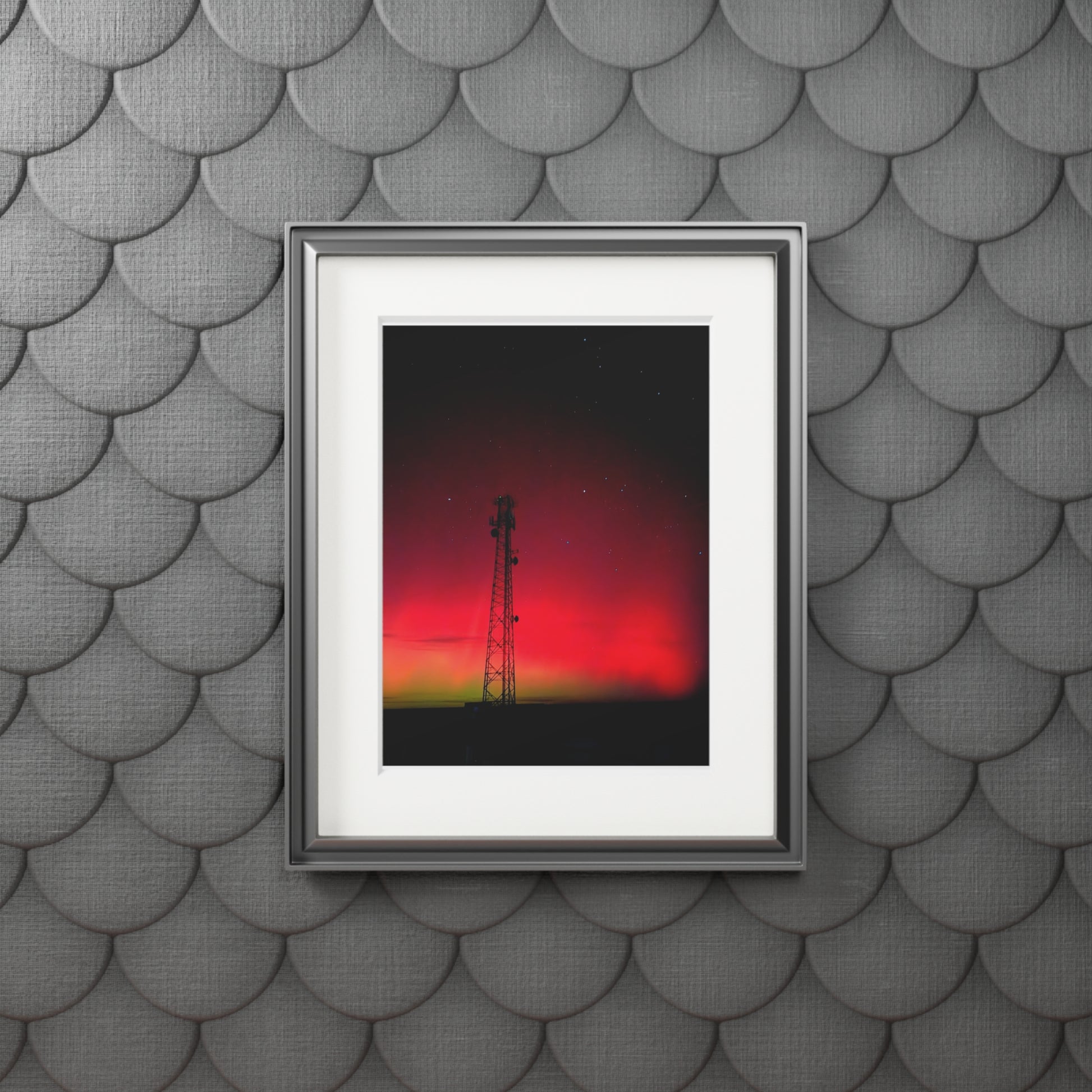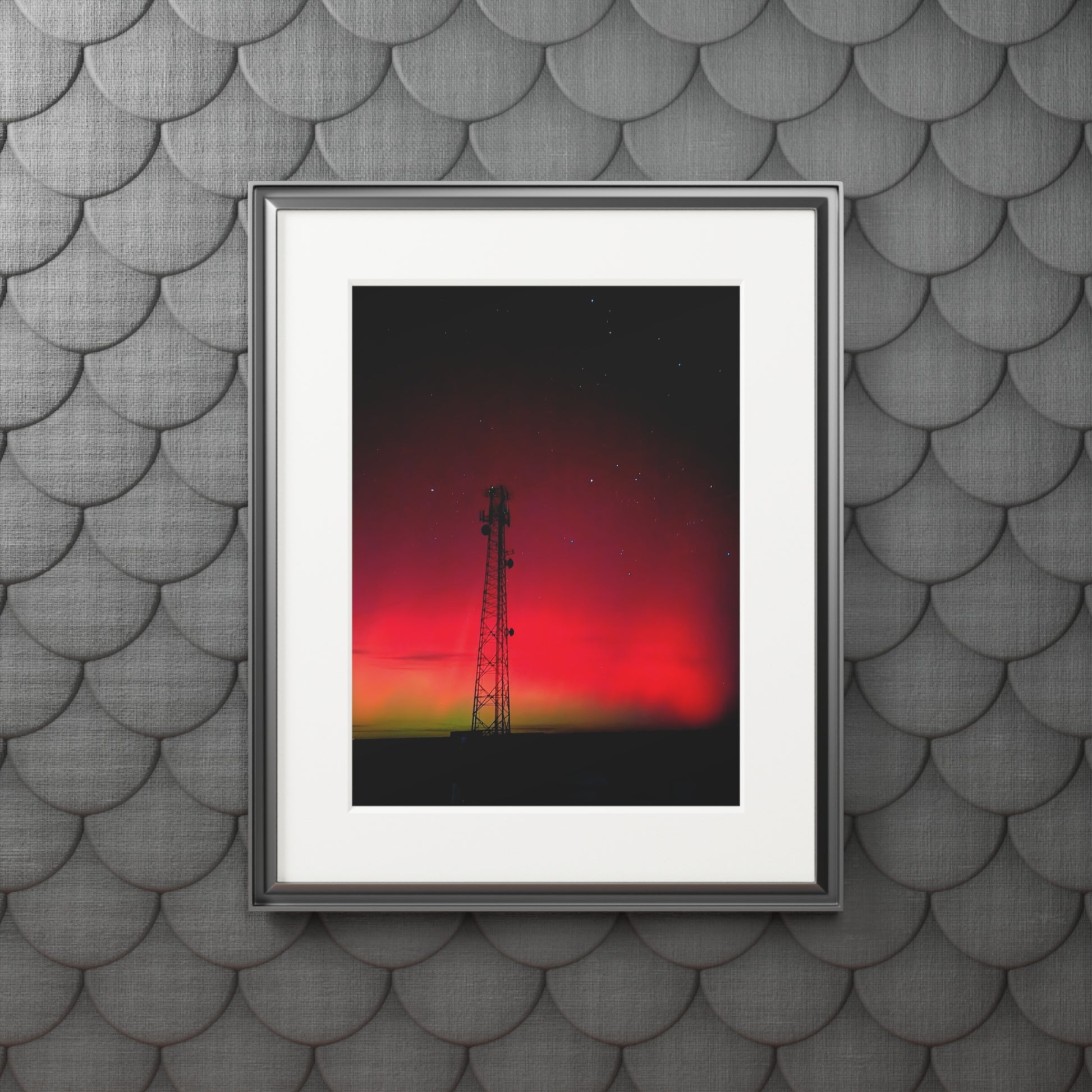 In this rare moment, the sky wasn't just a backdrop--it was the main event. This photograph captures the raw, otherworldly power of the Northern Lights bathing the horizon in impossible hues of red and green. Yet, standing tall is the communications tower. a symbol of our own human connectivity and resilience. This piece is a powerful mediation on contrast: the vastness of the universe meeting the structures of our modern life. It's a print for those who seek the magic in the everyday and the epic in the landscape.