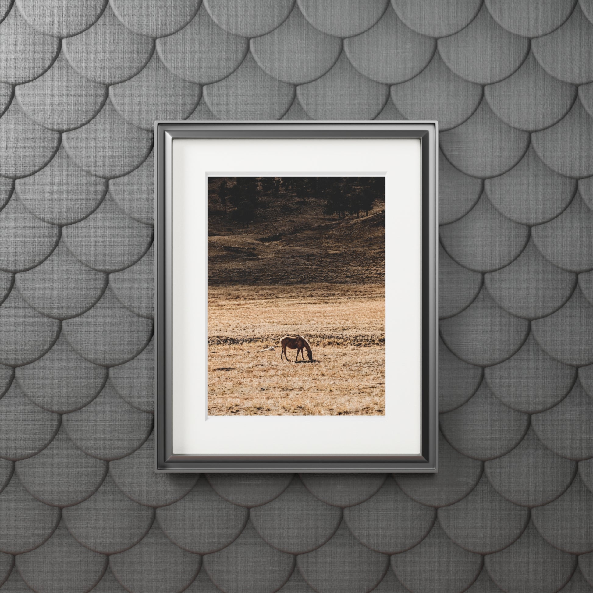 Captured in the fading gold light of the plains, this print encapsulates the quiet power of endurance. The horse stands alone, a perfect subject set against the rugged terrain, yet it is completely grounded--a deep, tangible connection to the land beneath it's hooves. This is more than a landscape; it's a moment of solitude that reminds us to stand firm and find hope in our own vast, sometimes challenging, environments. Perfect for a space that needs a touch of beauty and nostalgic warmth.